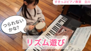ブログ 「ひなまつり」でリズムあそび 3月3日にレッスンに来た幼稚園の生徒さんとリズムあそびをしました。2種類のリズムカードもしっかり見ながら、音源のリズム・歌のリズムにつられることなく、4拍子の中でリズムを叩けました。楽しく学べてこの笑顔♡ 浅草で購入したミニ和太鼓もトトト... 2026.03.03 ブログ