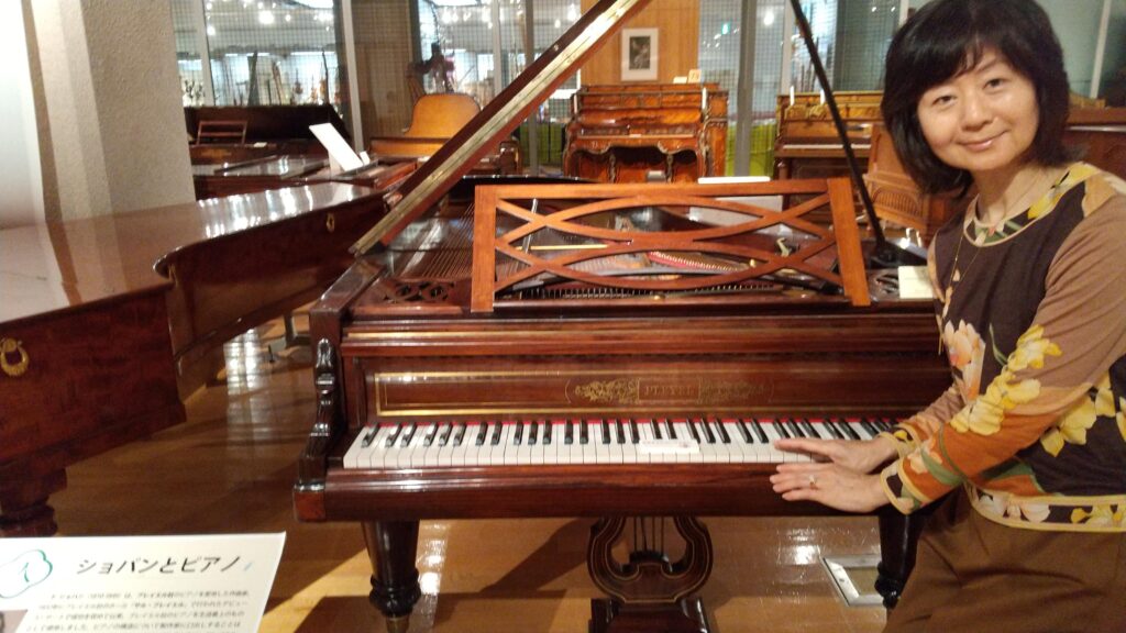 私の写っている写真はフランスのプレイエル社製 ショパンの愛したピアノです。