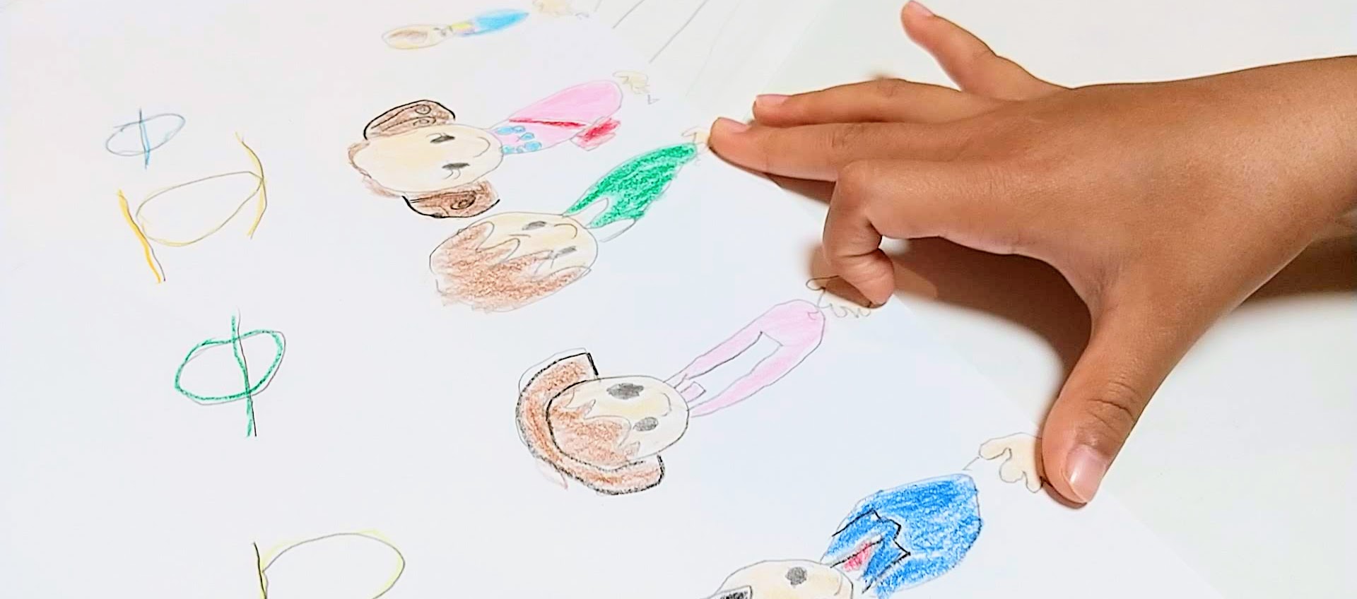 年長さんご入会3回目のレッスンの時におゆびの5にんかぞくの絵を描いてきてくれました。