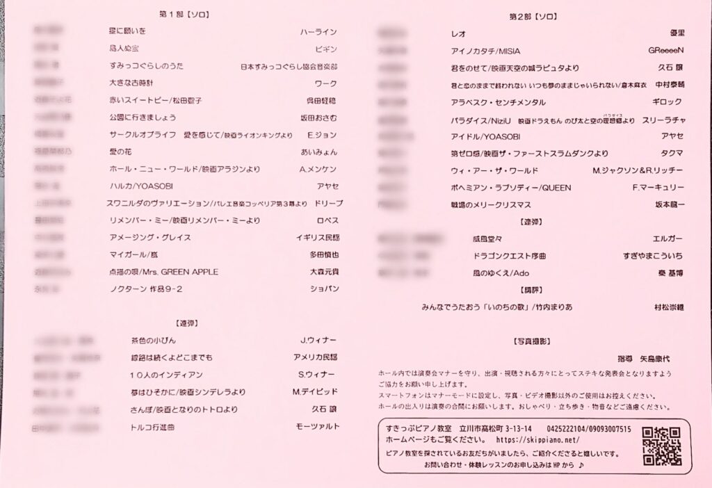 ソロ曲、連弾曲ともに充実したすごいプログラム!生徒さんたちの選曲のセンスがもう素晴らしい!